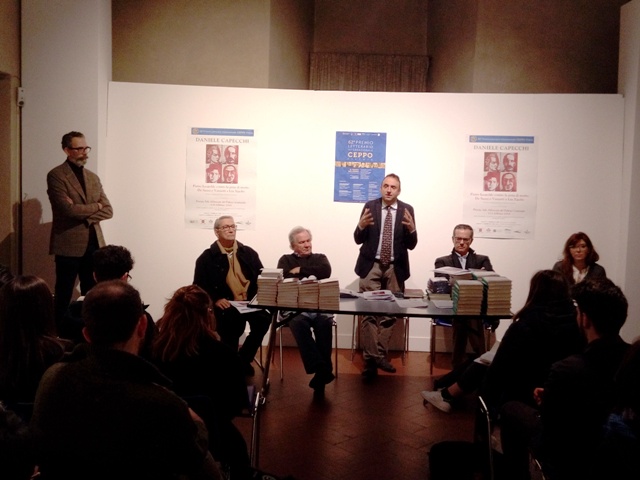 Alla presenza dei giornalisti e dei giovani blogger del Ceppo, si è svolta la conferenza stampa di presentazione del programma completo del Premio e della mostra di Daniele Capecchi, alla quale hanno partecipato Paolo Fabrizio Iacuzzi (direttore artistico del Premio), Guliano Livi (presidente dell’Accademia), Marcello Bugiani (Comune di Pistoia), Luca Iozzelli (presidente della Fondazione Cassa di Risparmio di Pistoia e Pescia) e gli altri rappresentanti degli sponsor.