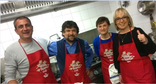 Dopo l'assaggio delle zuppe in gara la cucina dell'aa “alle Camelie” propone una Bruschetta con olio extravergine bio dell'azienda, tagliata di pollo, formato di zucca e insalata di cavolo e radicchio, torta di mele acqua, vino, rosso bio dell'azienda caffè.