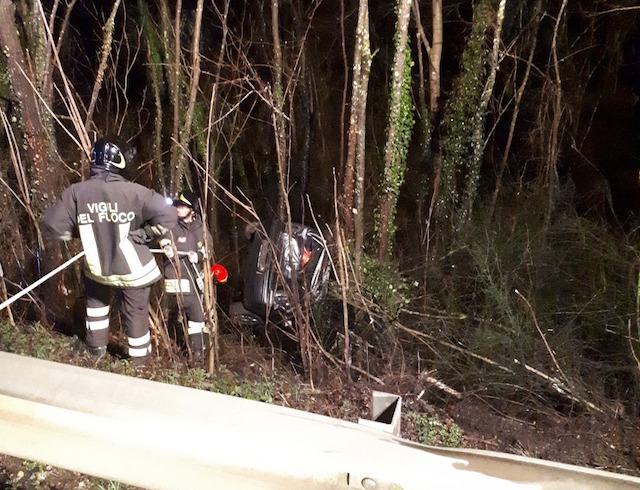 I vigili del fuoco di Siena sono intervenuti ieri sera, venerdì 2 febbraio, intorno alle 21.50 sulla Siena Firenze, al chilometro 9 tra Monteriggioni e Badesse, per un incidente stradale che ha coinvolto un'auto finita nella scarpata. Il conducente è stato affidato alle cure del personale del 118. Presente sul posto anche la Polizia.