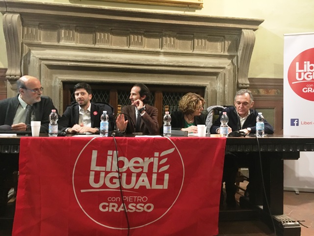 Speranza: Per capire chi siamo bisogna partire dal sistema di valori che vogliamo rappresentare, e sono per me valori universali che però rischiano di non avere rappresentanza. Liberi e Uguali nasce per questo. Abbiamo delle parole fondamentali, come il lavoro. In un Paese dove la precarietà è ormai la regola e il lavoro un dramma per molti, noi abbiamo delle proposte che vanno verso una maggiore sicurezza e stabilità. Oggi si stanno mettendo in discussione anni di battaglie e la civiltà stessa del lavoro ne sta pagando le conseguenza e questa storia dei braccialetti ne è l'emblema. C'è bisogno di una forza politica nuova, forte. Si vive in una dimensione di insicurezza. Vorrei una società che si fa carico di queste complessità, una società più giusta, più equa. Dietro il nostro slogan “Per i molti, non per i pochi” c'è un'idea di società, in cui nessuno resta indietro e si allargano le possibilità di tutti. Lo scenario che oggi abbiamo davanti mostra il ritorno della peggior destra, i M5S hanno una rabbia che non riescono a tradurre in un progetto ma che resta rabbia e non crea cambiamento, e poi c'è il Pd che ha negato grande parte dei valori per cui era nato, diventando copia sbiadita del peggior berlusconismo. Se questa è la fotografia dell'Italia sulle nostre spalle grava una grande responsabilità”