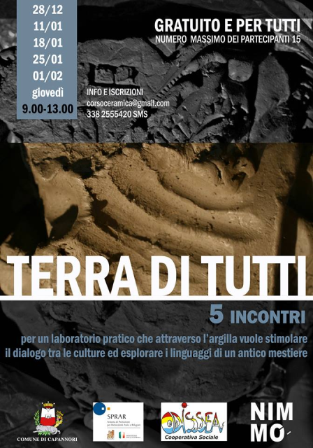 Sono ripartiti i laboratori creativi della cooperativa Odissea aperti a tutta la cittadinanza, tra questi il gettonatissimo corso di ceramica “Terra di tutti”, che attraverso il lavoro con l’argilla vuole stimolare il dialogo tra le culture e il corso di teatro sociale che coinvolge anche i richiedenti asilo. Sono questi alcuni dei laboratori dinamici di integrazione sociale pensati dalla cooperativa sociale, nata nel 2007 dal progetto comune di alcuni giovani di rispondere al “problema” dell’immigrazione in modo positivo.