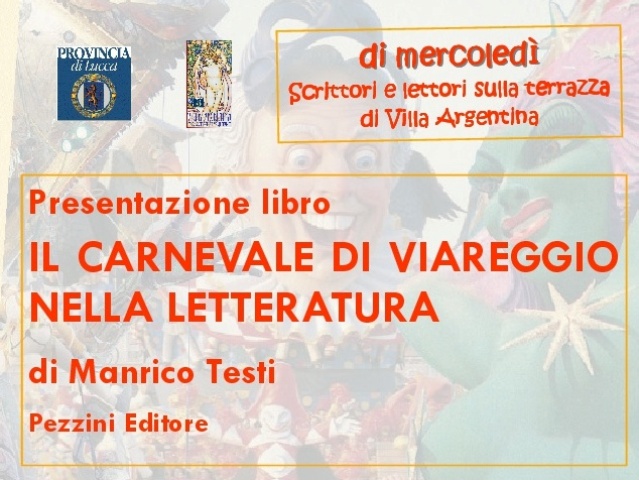 Non poteva che essere presentato in pieno periodo carnevalesco il libro 'Il Carnevale di Viareggio nella letteratura' scritto da Manrico Testi ed edito da Pezzini editore. L'appuntamento è per domani – 7 febbraio alle 17,30 a Villa Argentina a Viareggio nell'ambito della rassegna letteraria “Di mercoledì” promossa dalla Provincia di Lucca. All'incontro, oltre all'autore, parteciperanno i critici Enrico Dei e Giuseppe Paoli.