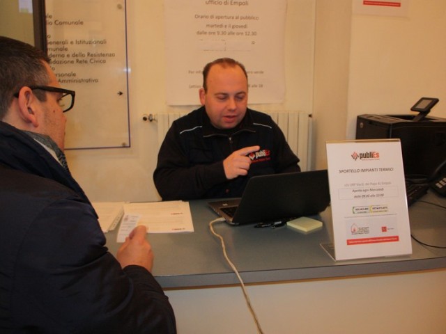 L’Agenzia di proprietà della Regione Toscana Publies Energia Sicura Srl da stamani (mercoledì 7 febbraio 2018) ha aperto uno sportello al pubblico presso l’Urp in via Giuseppe del Papa 41 nel quale, ogni mercoledì dalle ore 9 alle ore 13, un proprio tecnico sarà a disposizione dei cittadini per chiarimenti e richieste di informazioni circa le pratiche sulle caldaie e gli impianti termici in generale.