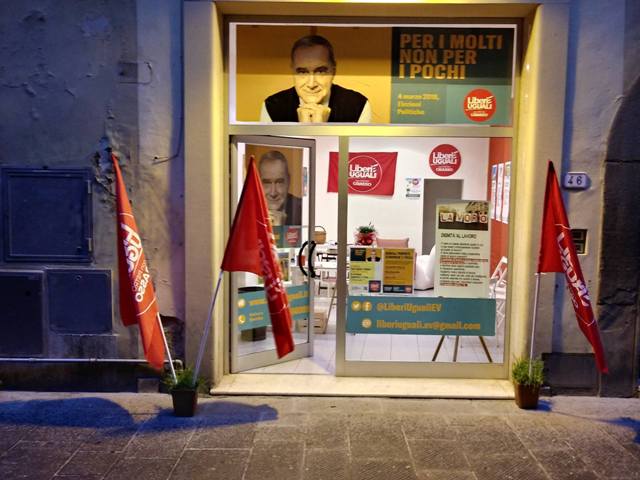 Il comitato elettorale di Liberi e Uguali in via Del Papa a Empoli