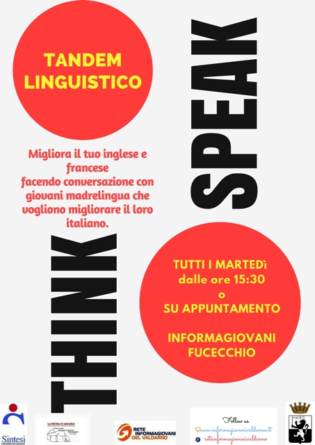 - Ogni Martedì dalle 16,30 TANDEM LINGUISTICO con madrelingua inglese per conversare in lingua: l'appuntamento col TANDEM diventa anche su appuntamento per venire incontro alle molte richieste pervenute. Occorre contattare l'Informagiovani per prenotare una data e un orario in cui si è disponibili e gli operatori penseranno a trovare il compagno di dialogo,
