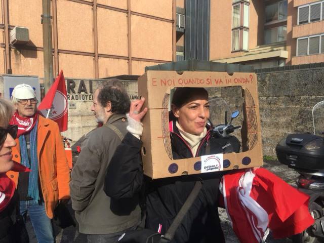 Circa quaranta persone hanno manifestato oggi, 8 febbraio alle 13:00, sotto la sede regionale della Rai in largo Alcide De Gasperi, 1 per protestare contro la 'censura' di Potere al Popolo nei programmi Rai.