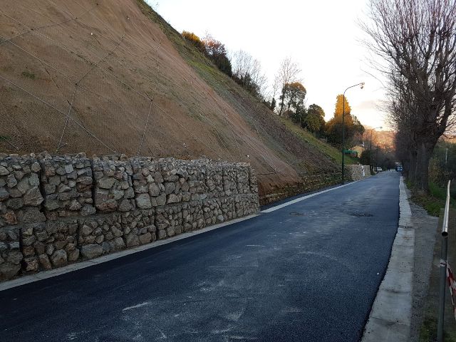 I lavori, pressochè conclusi, hanno riguardato la stabilizzazione del versante attraverso un intervento specialistico di rinforzo sul versante stesso e una corretta regimazione delle acque meteoriche che verranno ora convogliate nel nuovo tratto fognario realizzato. I lavori verranno completati, condizioni atmosferiche permettendo, entro le prossime settimane per il rinverdimento della scarpata per i quali sarà sufficiente prevedere la circolazione a senso alternato per i giorni necessari all'intervento.