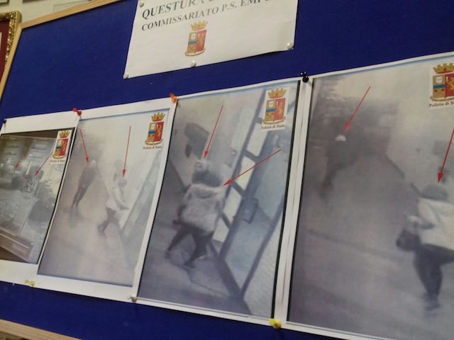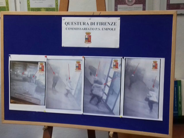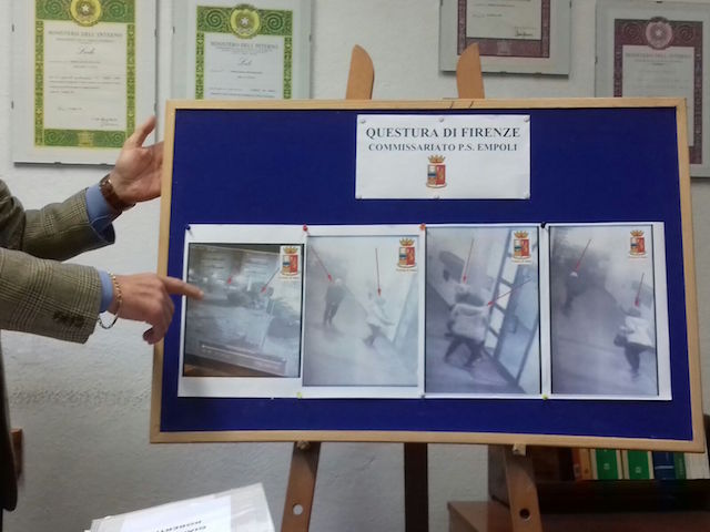 Con queste informazioni la polizia si è messa alla ricerca della coppia. Le indagini hanno portato a individuare due persone, tossicodipendenti, che potevano corrispondere alla descrizione. Lo scorso 8 febbraioè stato fatto un pattugliamento in abiti civili nei pressi della stazione ferroviaria dove sono stati individuati i due presunti responsabili. Questi hanno tentato di darsi alla fuga e fuggire chiudendosi nei bagni a gettone della stazione. I due sono stati quindi fermati una volta aperte le porte elettroniche. La donna è stata trovata in possesso di uno dei cellulari rubati e per questo denunciata per ricettazione.