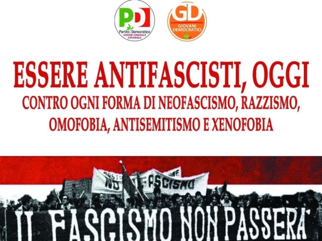 Il Partito Democratico ed i Giovani Democratici di Capannoli, dopo aver preso parte alla grande manifestazione antifascista pisana di fine gennaio, organizzano un' iniziativa pubblica per rispondere al clima che si respira nel Paese.