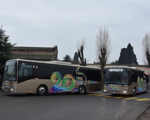 1998-2018: Li-nea spa compie vent’anni e festeggia con nuovi bus “firmati” One. La società di trasporti fiorentina ha acquistato due nuovi mezzi, i primi decorati con le insegne di One, la nuova Società Consortile che, in seguito alla firma del Contratto biennale con la Regione siglato lo scorso dicembre, raccoglie i gestori del trasporto pubblico su gomma in Toscana. Una ventata di rinnovamento in occasione del ventennale di Li-nea Spa, costituita in società nel luglio del 1998.