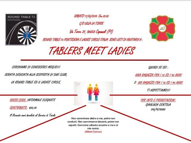 Sabato 17 Febbraio 2018 alle ore 20.30 presso Villa La Torre di Capannoli la Round Table 73 Pontedera ed Il Ladies’ Circle Italia organizzano :