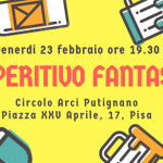 L’Aperitivo Fantasy si svolgerà venerdì 23 febbraio 2018, dalle ore 19.30, presso il Circolo Arci di Putignano, in Piazza XXV Aprile 17, a Pisa, e sarà condotto dalla scrittrice Romina Bramanti.