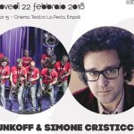Un nuovo grande concerto a Empoli, che si conferma sempre più ‘Città della Musica’. I Funkoff e Simone Cristicchi tornano insieme dopo 3 anni dal loro ultimo concerto. Lo fanno con un grande evento al Cinema Teatro La Perla di Empoli, giovedì 22 febbraio, alle 21.15, una serata organizzata dal Centro Studi Musicali Ferruccio Busoni, in collaborazione con Eventi Music Pool e l’associazione Empoli Jazz, col patrocinio del Comune di Empoli, concerto nell’ambito di Empoli Jazz Winter & Spring 2018 XI Edizione e di Network Sonoro.