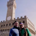Cloe con un fantastico vestito verde ricamato e lunghe trecce bionde e Robert con i capelli raccolti in una composta coda (niente treccine che sfoggia soprattutto nei concerti) hanno mostrato interesse nei confronti della pittura, ma anche dell'edificio in cui ci trovavamo. In particolare il musicista ha rivolto molte domande riguardo alla cronologia degli edifici storici (Uffizi, Duomo, Campanile di Giotto, Palazzo Vecchio) ed anche all'inquadramento temporale dei principali artisti, volendo capire chi veniva prima o dopo tra i protagonisti del Rinascimento ed è rimasto molto colpito dall'Adorazione dei Magi di Leonardo.