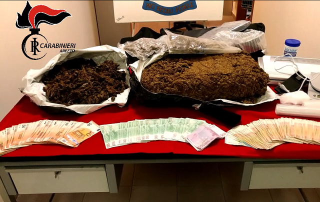 Riforniva di droga tutto la provincia di Arezzo con cocaina, hashish e marijuana, ma i carabinieri lo hanno rintracciato ieri pomeriggio dopo ricerche durate circa 2 mesi. L.B., 32enne di origini albanesi, cambiava spesso auto e domicilio. Questa volta non è valso a nulla: è stato scoperto assieme alla compagna, in casa sono stati trovati 7 kg di marijuana, 250 grammi di cocaina e circa 20 mila euro in contanti provento dell’attività di spaccio, oltre a tutto l'occorrente per il confezionamento. L'uomo sarebbe stato legato agli 8 'grossisti' arrestati tra giugno e dicembre dello scorso anno. Per il 32enne e per la compagna oggi si terrà il processo per direttissima.