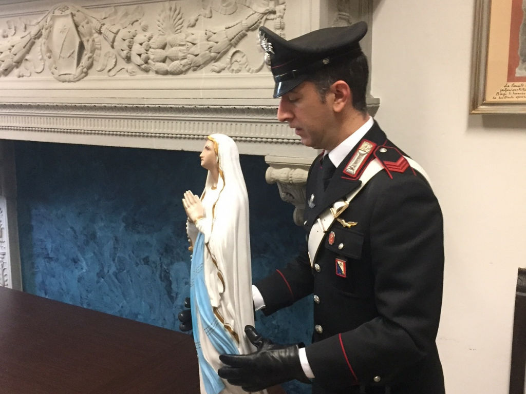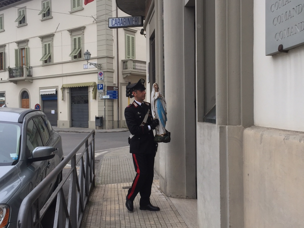 Poche ore fa, i Carabinieri della Stazione di Borgo San Lorenzo (FI), hanno ritrovato e recuperato la statuetta della Madonna trafugata due giorni fa dalla cappella dell’Ospedale di Borgo San Lorenzo (FI). La statua in gesso, dell’altezza di 80 cm. è stata recuperata dai militari dopo l’ispezione nell’abitazione di un 40enne del luogo, già noto alle forze dell’ordine. L’attività di polizia giudiziaria presso il domicilio dell’uomo è stata condotta nell’ambito delle indagini immediatamente attivate dai Carabinieri della Compagnia di Borgo San Lorenzo, alla notizia del furto della statua pervenuta ieri mattina dalla direzione dell’Ospedale. L’uomo, L.G. residente a Borgo San Lorenzo, che l’aveva trafugata nella notte tra il 14 ed il 15 febbraio 2017 portandola a mano fino alla sua abitazione, distante circa un chilometro dal nosocomio, è stato denunciato per furto aggravato. La statua recuperata verrà prossimamente restituita all’Ospedale di Borgo San Lorenzo.