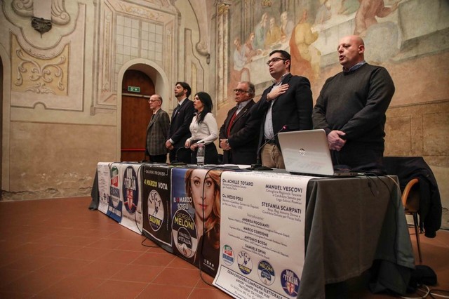 Alle 21 di venerdì 16 febbraio 2018, i quattro segretari di zona dei partiti: Andrea Poggianti per Fratelli d’Italia, Marco Cordone per la Lega, Antonio Bossa per Noi con l’Italia-UDC e Samuele Spini per Forza Italia avevano dato appuntamento a questo importante momento di approfondimento politico. La risposta non si è fatta attendere. Più di 100 persone erano presenti.