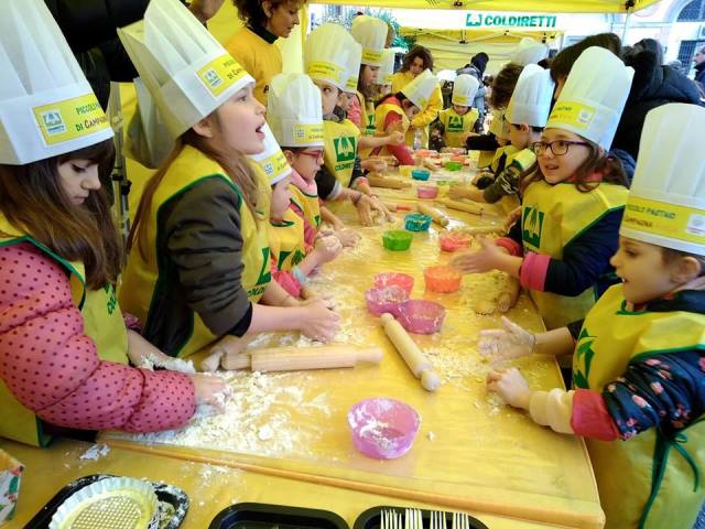 Per festeggiare quale miglior modo se non quello di degustare tanta buona pasta italiana al 100% con bambini che diventavano piccoli chef imparando a fare la pasta a mano con la guida dell’Agrichef di Campagna Amica Francesca Buonagurelli dell’Azienda Agrituristica Al Benefizio di Barga (Lu) .
