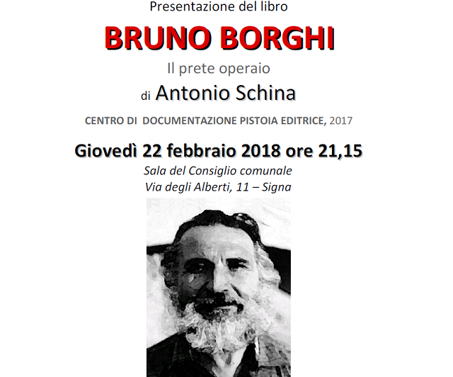 Il libro di Antonio Schina dedicato a Bruno Borghi, chiamato 'Il prete operaio', sarà presentato giovedì 22 febbraio alle 22.15 presso la Sala del Consiglio comunale (Via degli Alberti, 11) a Signa.