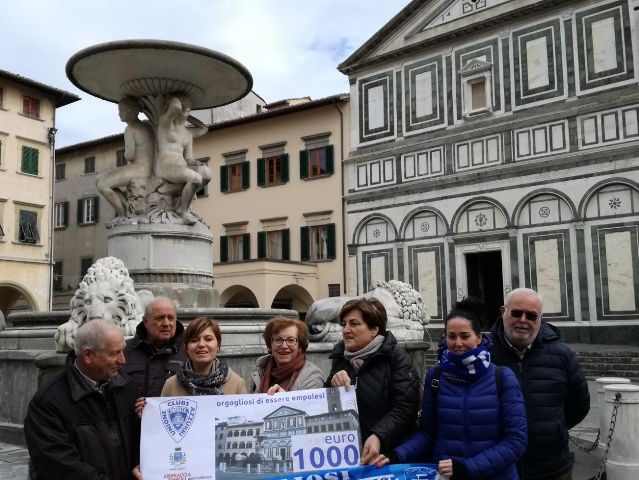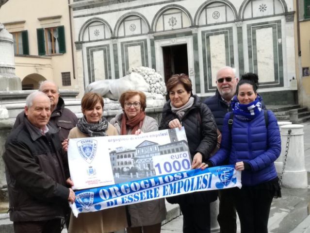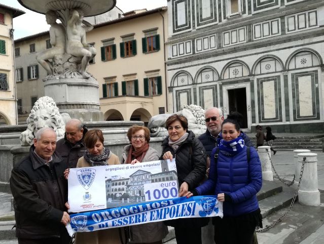 "L'idea è nata dal simbolo stesso della nostra Associazione, la Collegiata, che troneggia sulle nostre sciarpe e sui nostri striscioni e che ci rappresentano negli stadi di tutta Italia - afferma Athos Bagnoli, presidente dell'Unione Clubs Azzurri-. I nostri soci sono stati felici di contribuire con una donazione, deliberata dal nostro Consiglio, al restauro della Fontana dei Leoni". I mille euro sono stati già versati ad 'Abbraccia Empoli'.
