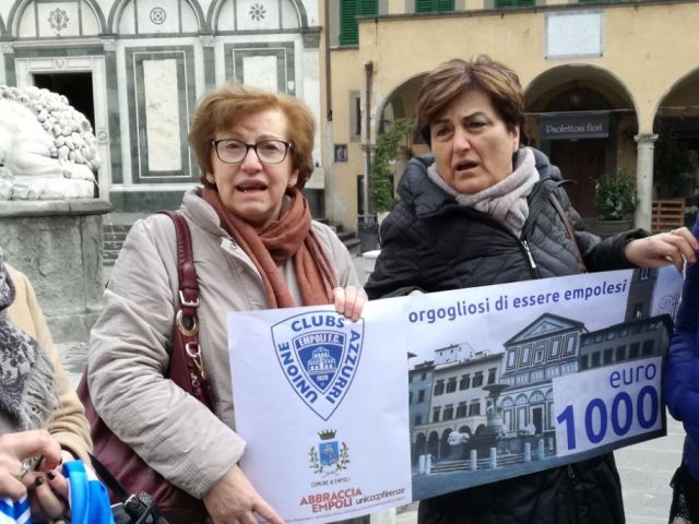 Alla consegna al primo cittadino Brenda Barnini erano presenti il presidente Athos Bagnoli e la segretaria Anna Puccetti dell'Unione Clubs Azzurri, la presidente dei soci Coop di Empoli Francesca Martini e la vicepresidente Maria Assunta Cappellini.