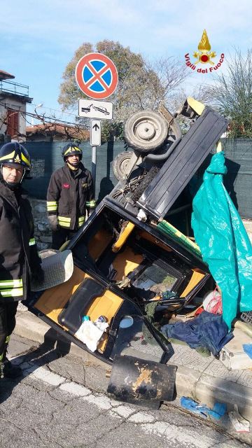 Un 72enne è stato soccorso a Larciano dopo che l'Apecar che guidava ha colpito un'auto e si è ribaltato. È avvenuto alle 9.30 in via Marconi a Larciano. Sul posto sono intervenuti i vigili del fuoco di Pistoia, distaccamento di Montecatini, la polizia municipale, l'automedica da Lamporecchio e un'ambulanza del Soccorso Pubblico di Larciano. L'anziano è stato trasferito al 'San Giuseppe' di Empoli in codice giallo. Il motocarro si è ribaltato a ridosso di un muro di cinta. I rilievi e le indagini sono in corso per chiarire la dinamica del sinistro. Si raccomanda prudenza nel percorrere il tratto di strada interessato per la presenza di operatori.
