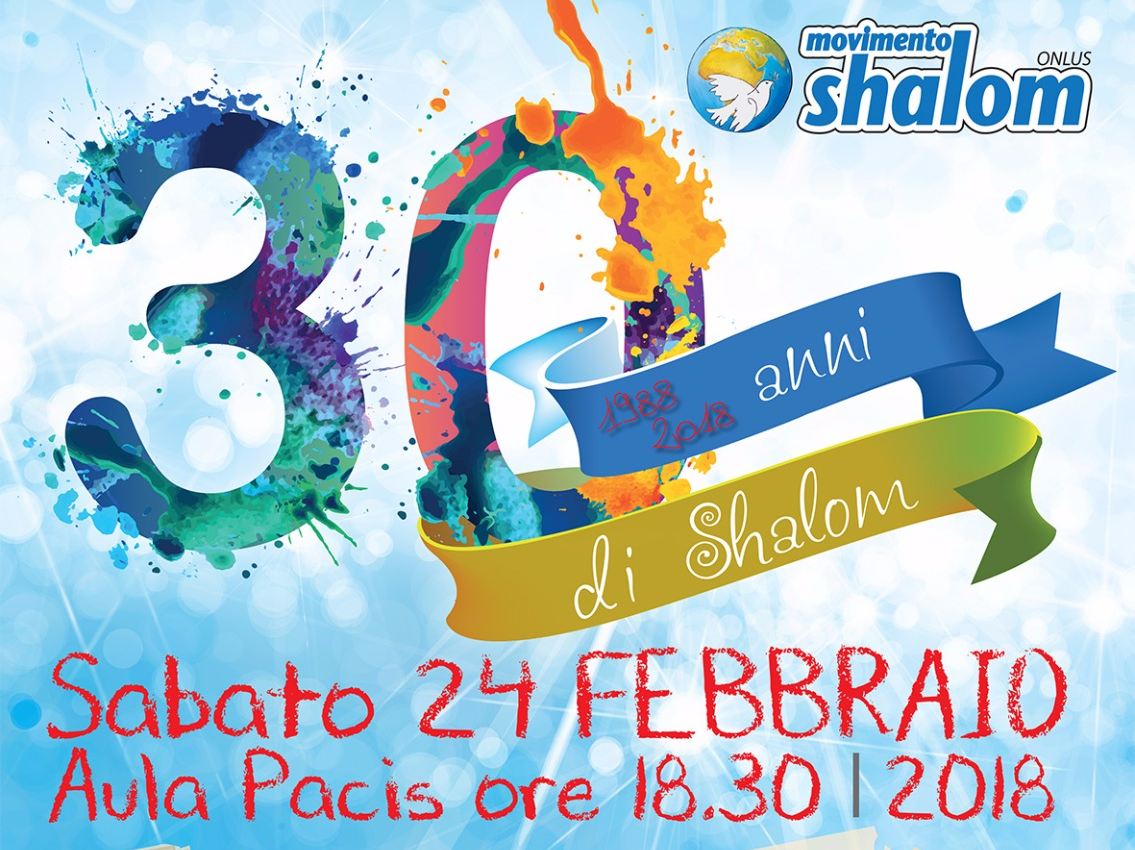 Vi aspettiamo Sabato 24 Febbraio, a partire dalle ore 19.00, in Aula Pacis, sotto i Loggiati di San Domenico : saranno proprio i bambini dell’Atelier Shalom ad aprire la serata, con lo spettacolo “Attenti al Lupo”, al quale seguirà una cena a buffet. Alle 21.00, poi, ripercorreremo insieme i nostri 30 anni con le testimonianze di tutti coloro che li hanno vissuti, e finiremo con il saluto affidato ai ragazzi del gruppo delle scuole medie – il nostro futuro - che renderanno un tributo a Paolo Vallesi cantando “Pace”, uno dei suoi ultimi successi.
