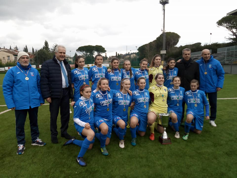 Le Giovanissime guidate da mister Mirko Grilli sono prime in classifica nel Campionato Regionale, seguite dalla Fiorentina Women’s. La squadra azzurra risulta già qualificata alla Fase Nazionale, che si svolgerà nel mese di Maggio, con la finale nel Centro Tecnico di Coverciano (Firenze).