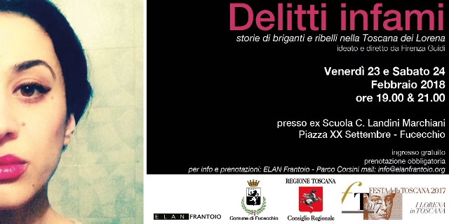 In una location del tutto inaspettata, la ex-scuola Landini Marchiani a Fucecchio, Firenza Guidi propone una nuova drammaturgia e spettacolo che racconta dei tumulti e rivolte di ribelli e briganti ai tempi dei Lorena. Venerdi 23 e Sabato 24 Febbraio, alle ore 19.00 e alle ore 21.00 andrà infatti in scena Delitti infami, evento selezionato dalla Festa della Toscana 2017.
