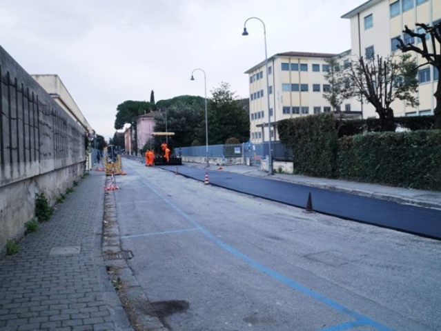 Dopo l'asfaltatura di via San Zeno e di via Santa Caterina nei giorni scorsi, ora è la volta di via Buonarroti, sotto i ferri già da mercoledì scorso. La strada non è interrotta al traffico, ma viene asfaltata un lato della carreggiata per volta. Il primo lotto dei lavori riguarda la parte da via San Lorenzo a via San Zeno. Gli operai di Avr stanno procedendo a scarnificare il vecchio manto stradale e stendere il nuovo asfalto. Mercoledì 28 febbraio il primo lotto della strada sarà completato, compresa la realizzazione della segnaletica nuova. Da giovedì 1 marzo si passerà a lavorare nel secondo lotto, la parte della strada compresa tra via San Lorenzo e via San Francesco.