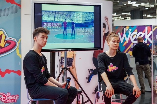 “Per noi sono stati molto importanti non solo le medaglie ma anche i fallimenti, perché ci hanno dato la giusta grinta per ripartire e raggiungere la vittoria”, hanno raccontanto i due giovani campioni mondiali di pattinaggio a rotelle (pair slalom freestyle) che stamattina si sono esibiti in un emozionante spettacolo su alcune delle musiche più famose della serie tv Soy Luna amatissima dagli adolescenti e nel pomeriggio hanno incontrato il pubblico allo stand Disney Channel Soy Luna.