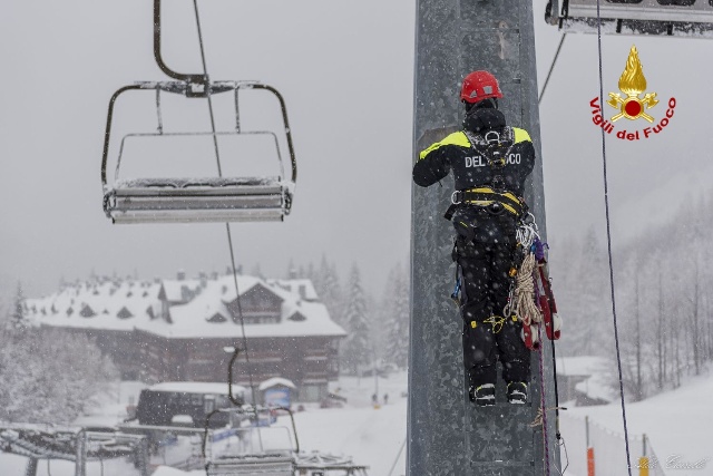 Parte dell’addestramento è stato dedicato inoltre allo scarico degli impianti di risalita, con prova di evacuazione della seggiovia, che si è svolta a chiusura della giornata e protraendosi fino alle ore notturne, ricreando così uno scenario operativo verosimile.