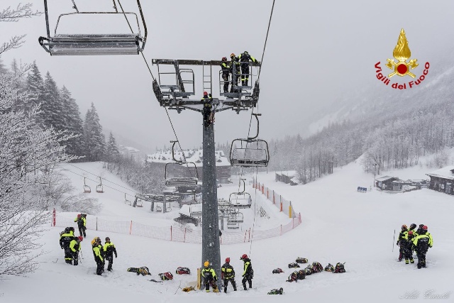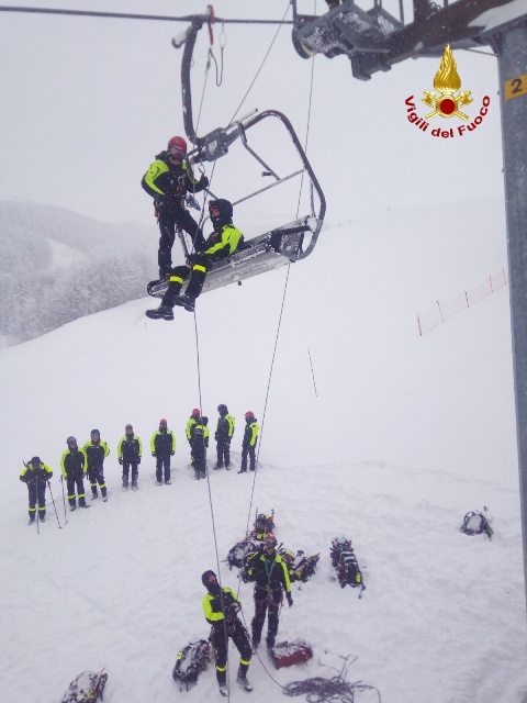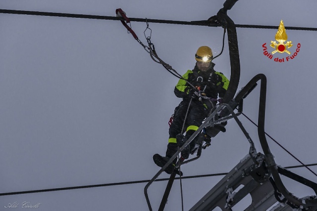 Parte dell’addestramento è stato dedicato inoltre allo scarico degli impianti di risalita, con prova di evacuazione della seggiovia, che si è svolta a chiusura della giornata e protraendosi fino alle ore notturne, ricreando così uno scenario operativo verosimile.