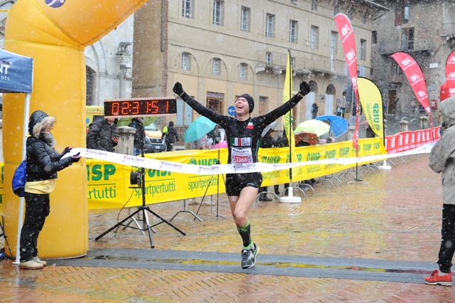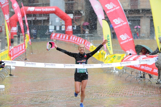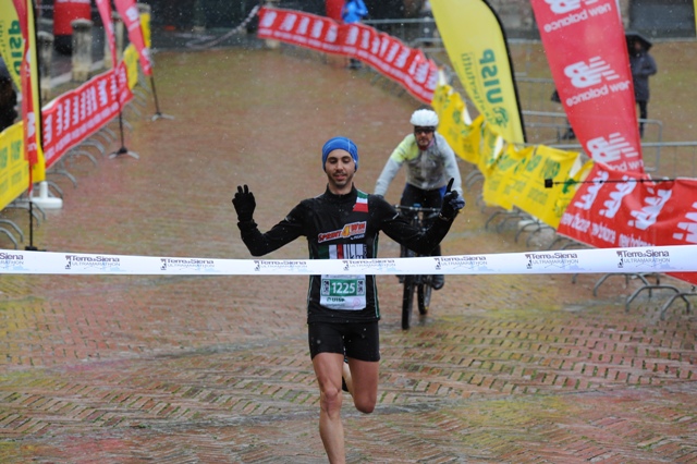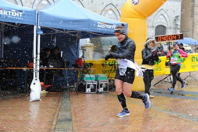 Nulla ha potuto il maltempo di fronte alla forza di volontà degli ultramaratoneti che questa mattina hanno sfidato neve  e vento freddo pur di appendere al collo la medaglia della quinta edizione del Terre di Siena Ultramarathon. Oltre milleseicento sono stati gli atleti dei tre percorsi competitivi di 50,32 e 18 km, rispettivamente partiti da San Gimignano, Colle val d’Elsa e Monteriggioni, e arrivati al traguardo allestito in piazza del Campo a Siena, reso ancora più suggestivo dalla copiosa nevicata, sempre più incessante con il passare delle ore.