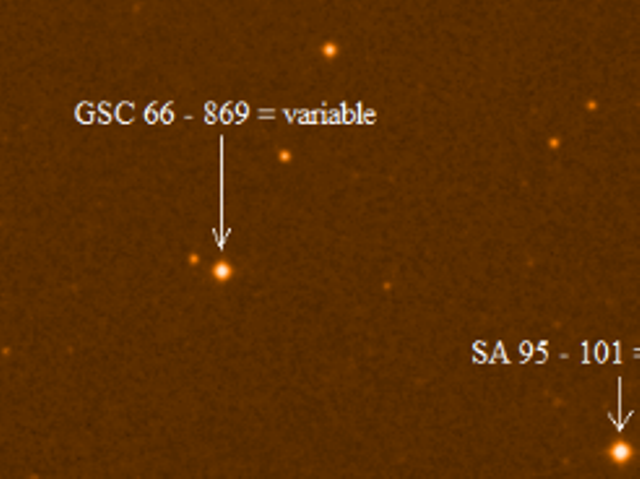 La stella in questione, che si trova nella costellazione dell'Eridano (non lontano dalla famosa costellazione di Orione) in una zona di cielo denominata SA95, era già stata catalogata da alcuni astronomi in passato col nome GSC 66-869, ma nessuno si era accorto che la sua luminosità variava nel corso del tempo. Poiché l'ampiezza della variazione luminosa è abbastanza piccola, ciò forse spiega come mai questa variazione non era stata notata in precedenza da altri ricercatori. Inoltre da sofisticate analisi statistiche effettuate da Santangelo è risultato che la GSC 66-869 ha una variazione periodica di luminosità che è compatibile con due diverse spiegazioni alternative l'una all'altra: questa stella potrebbe essere di un particolare tipo di variabile pulsante (sono dette pulsanti le stelle variabili la cui superficie pulsa come in una sorta di gigantesco respiro) oppure più verosimilmente potrebbe trattarsi di una stella variabile binaria ad eclisse (ovvero composta in realtà da due stelle vicinissime tra loro che orbitano una attorno all'altra eclissandosi a vicenda) di un sottotipo particolare. Inoltre lo studio della variazione luminosa di GSC 66-869 ha messo in evidenza anche alcune peculiarità di non semplice spiegazione su cui si sta ancora indagando, ma che potrebbero avere sviluppi molto interessanti e rendere questa stella di un certo rilievo per le sue specificità; pertanto le ricerche su questa stella proseguiranno anche dopo la scoperta per cercare di spiegare in modo esauriente le caratteristiche osservate.