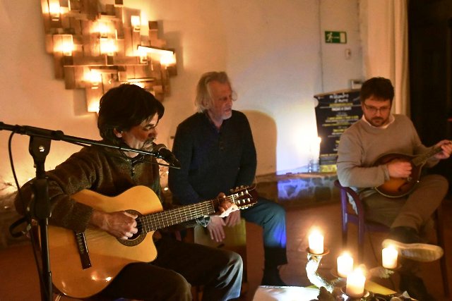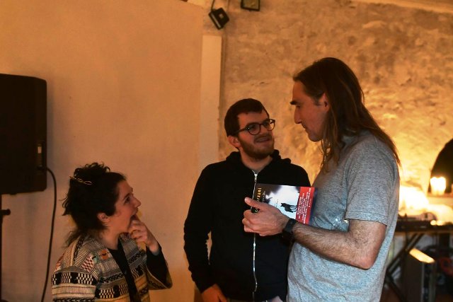 Fra le candele accese si è esibito anche il bravissimo percussionista, Ettore Bonafè, accompagnato da Romeo e Nicola introducendo i due ospiti speciali: Folco Terzani (figlio del grande Tiziano Terzani) e Raffaele Palumbo, giornalista di Controradio. La presentazione del libro “Il cane, il lupo e Dio” di Terzani, arricchita dalle letture di Elisa Bagni, è stata l’occasione per riflettere, con la grande energia di Folco e la professionalità di Palumbo, sulla necessità di ritrovare un rapporto profondo con la natura che spesso abbiamo smesso di ascoltare finendo per non essere consapevoli di tutte le risorse che abbiamo.