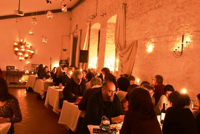 Ad attendere la seconda parte della serata l'antica Limonia di Pescille che ha raccolto tutti in un’atmosfera davvero magica fra fiaccole accese, installazioni e un sorridente gruppo di giovanissimi camerieri volontari che hanno servito un’ottima cena a lume di candela.