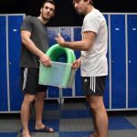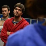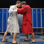Molto interessante la scelta registica di posizionare il pubblico all’interno della scenografia sul palco, che lo rende parte integrante dello spettacolo, e che gli fa vive in prima persona le vicende dei protagonisti, come se fosse nello spogliatoio insieme a loro, questo grazie anche alla straordinaria naturalezza con cui i due attori Giulio Maria Corso e Samuele Picchi , interpretano le vite dei due protagonisti, facendo trasparire cosi il grande legame amicizia e complicità e spensieratezza che c’è tra i due istruttori, proprio come accade nella vita reale. E altrettanto riescono a fare nella relazione conflittuale con la direttrice della piscina, molto ben interpretata da Monica Bauco.