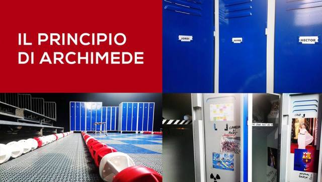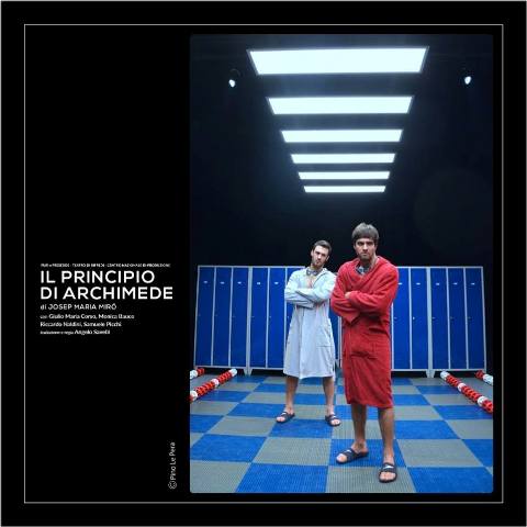 La vicenda de "Il principio di Archimede" , si svolge tutta nello spogliatoio degli istruttori di nuoto di una piscina, nell'arco delle ore che intercorrono tra le lezioni mattutine e quelle pomeridiane. I personaggi sono quattro: Jordi, (Giulio Maria Corso), giovane istruttore estroverso e apprezzato dai ragazzini per la sua giovialità; Hector, (Samuele Picchi) collega di Jordi riservato e conformista e molto ligio al lavoro; Anna, (Monica Bauco) direttrice della piscina, severa e intransigente, segnata da tragedie vissute in passato; David, (Riccardo Naldini) padre di uno dei ragazzini che frequentano i corsi di nuoto, ossessionato dai tanti pericoli in cui può incorrere il figlio.