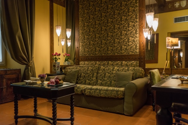 Il palazzo, affacciato su Palazzo Vecchio, a pochi passi dalle sponde dell’Arno, custodisce dei veri tesori, è come un museo che racconta la città. Basta affacciarsi nell’imponente Sala Colazioni per ammirare i tondi affrescati che rappresentano i protagonisti del Risorgimento: all’epoca di Firenze capitale del Regno d’Italia (1865-1871) l’hotel era il ritrovo fisso dei parlamentari. Pochi passi, e possiamo ammirare un loggiato del 1500, recentemente restaurato e restituito al suo splendore. Qui trova posto il Ristorante La Chiostrina, dove gustare le specialità gastronomiche della Toscana e italiane. Quanto al Tuscan Floor, decorato in stile Rinascimentale, crea un’atmosfera davvero unica tra soffitti a travi di legno, letti a baldacchino, decorazioni d’epoca, tessuti e arazzi preziosi.