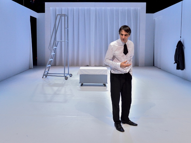 In uno spazio ridisegnato per l’occasione, con gli spettatori direttamente in scena con gli attori, Alessio Bergamo e un gruppo di sette interpreti di scuola stanislavskijana, convergenti nell’interesse per il lavoro del maestro russo Anatolij Vasil’ev, hanno creato un carosello di apparizioni surreali, umoristiche e anche demoniache, che guidano il pubblico nella mente (e i suoi meandri) del consigliere titolare Aksentij Ivanovič Popryšin.