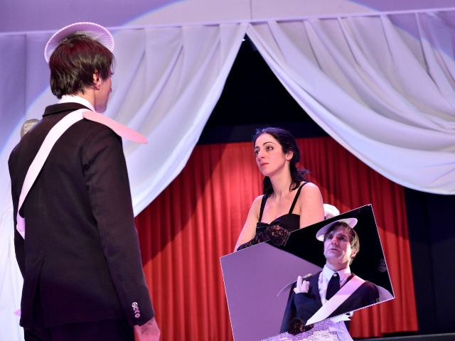 “Per Stanislavskij in scena tutto deve essere reale – afferma Bergamo – Vasil’ev, di cui sono stato collaboratore, ha fatto una rivoluzione copernicana: ciò che accade sul palcoscenico è una realtà di ‘gioco’. In Appunti di un pazzo gli attori Daniele Caini, Alessandra Comanducci, Domenico Cucinotta, Massimiliano Cutrera, Marco Di Costanzo, Erik Haglund, Stefano Parigi, danno vita a una fantasmagoria piena di senso che condividono a stretto contatto con gli spettatori, accolti in sala dallo stesso Popryšin, interpretato da Cucinotta”.