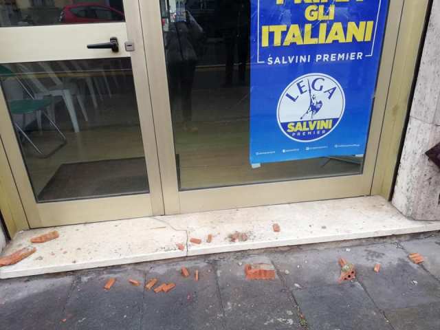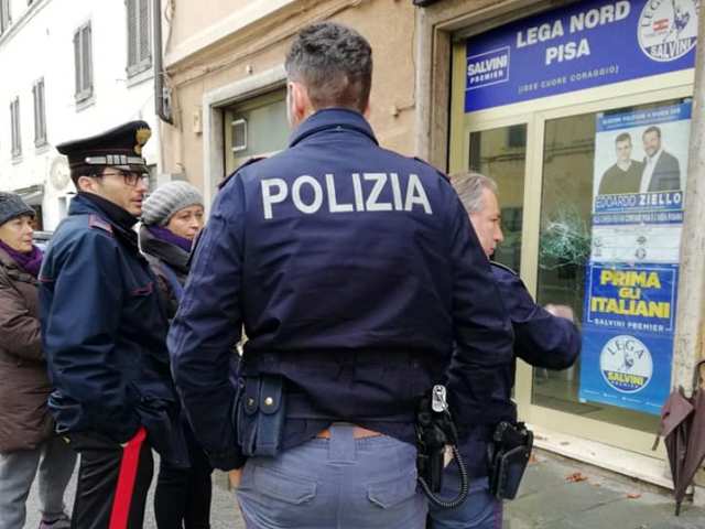 Nella notte tra mercoledì 28 febbraio e giovedì 1 marzo a Pisa si è registrato un atto vandalico alla sede del comitato della Lega Nord. A denunciarlo è Edoardo Ziello, che su Facebook ha scritto: "Una vergogna inaudita che rispecchia il clima di odio che una parte politica ha voluto creare nella città di Pisa. Come al solito non ci faremo intimorire dal gesto di un pazzo, poiché sappiamo molto bene che la maggioranza dei pisani perbene è dalla nostra parte e andremo avanti con ancora più forza".