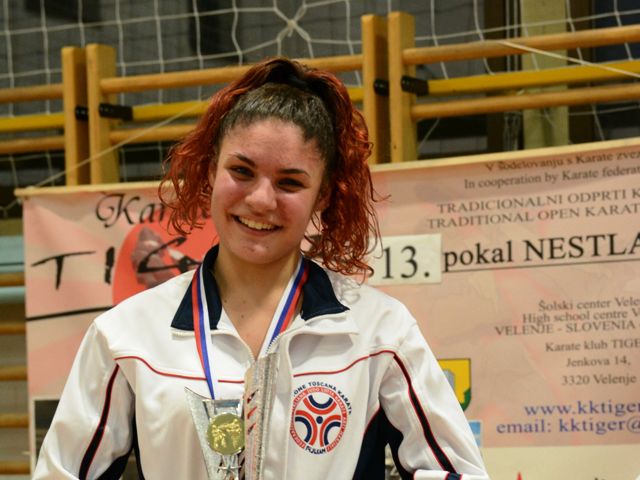 Eva Pieri torna vittoriosa dalla 13esima edizione del torneo internazionale Pokal Nestla Zganka, che ha visto la partecipazione di 50 atleti della Rappresentativa Toscana Giovanile di Karate. Eva, fiorentina classe 2000, non è nuova alle vittorie, infatti vanta 4 titoli Italiani nel kumite (combattimento sportivo) e la partecipazione ai Giochi del Mediterraneo con la Nazionale Italiana Giovanile Fijlkam. E’ proprio per questo che lo staff tecnico del Comitato Regionale Toscano Settore Karate, con a capo il maestro Andrea Capacci, aveva decretato il grado di capitano per Eva.