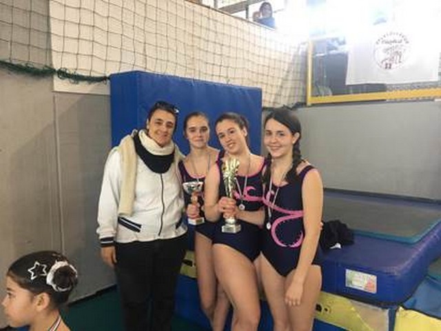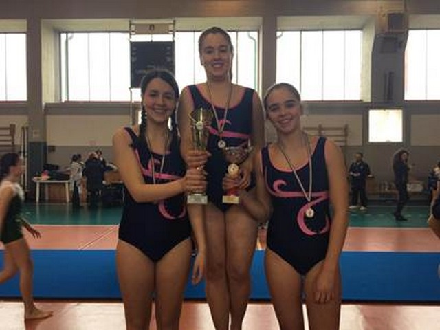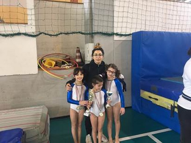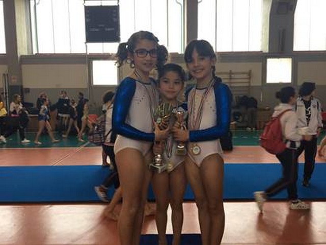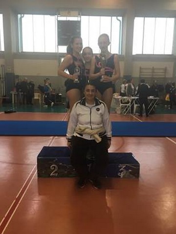 La squadra delle allieve composta da Aurora Cuccu, Alice Talarico e Francesca Coppeto vince sia la gara odierna che la finale regionale e si porta a casa diverse medaglie agli attrezzi: