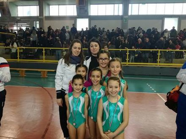 La squadra mista con Aurora D’Aniello, Rebecca Boretti e Marta Giannoni vince la gara della giornata e anche la finale regionale, e Aurora si porta a casa anche il secondo posto a trave e volteggio e il terzo a corpo libero.