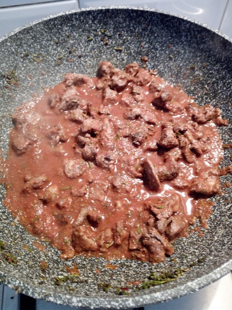 Ho fatto solo la foto della cottura con la salsa di pomodoro e le spezie del mio cinghiale, purtroppo non ho scattato foto del piatto finito ero troppo impaziente e nervosa per avere un parere dal mio compagno e dai miei genitori e poi mi sono scordata.