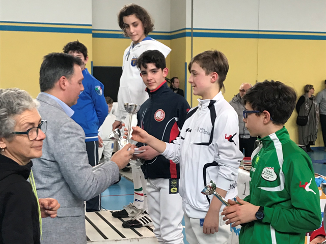 hanno partecipato per la Cambiano: Guido Giovannini, 13° e Federico Gronchi, 3°, battuto solo in semifinale 10-8 da Gabriele Bernardini di Foligno che vincerà poi la gara davanti a Gino Di Cola del Club Scherma Formia. Gronchi, primo dei toscani, era alla sua seconda gara dopo un lungo periodo di riposo dovuto a un infortunio. “E’ un giovane atleta, dotato di grande determinazione e fantasia tattica. Possiede anche una buona tecnica, ma il suo alto rendimento è dovuto al fatto che riesce a divertirsi e tutto diventa così facile. – questo il commento del maestro di scherma Mario Rosati - Sicuramente è uno fra gli atleti più dotati e con un buon potenziale di miglioramento; spero che Federico continui ad allenarsi con assiduità e passione per poter meritare quel podio a cui è sempre più vicino”. Il prossimo impegno della società di scherma che porta il nome della prestigiosa Banca di Cambiano SpA, suo main sponsor, sarà sabato e domenica prossima a Siena per la IV Prova under 14 e Trofeo CONI in cui avrà ben dieci atleti in gara.
