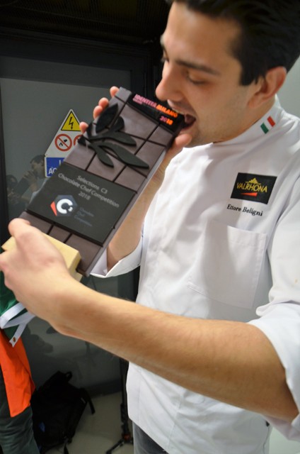 La soddisfazione di Ettore è condivisa tra tutti i sarteanesi. Suo padre, tra l’altro, gestisce un frequentato pub nel centro storico. Il sindaco e amico Francesco Landi fai dei sentiti complimenti: “Ettore – osserva – dimostra che ormai non ci sono più confini. Si può partire da un piccolo borgo e farsi strada nel mondo. Certo è che la passione, l’impegno, la disponibilità al sacrificio sono alla base di ogni successo. Questo nostro concittadino è un esempio per tanti giovani”. Per vincere la finale italiana, Ettore Beligni ha prima inviato una ricetta, corredata di foto. Superata questa selezione, è stato ammesso alla finalissima disputata da sei quotati colleghi. A Milano, i concorrenti avevano un tema: fare una pralina e un dolce utilizzando la qualità di cioccolato Manjari, originario del Madagascar. “Ho cercato di utilizzare ingredienti legati a questo Paese – racconta Ettore - e alla fine il dolce ha richiesto sedici singole lavorazioni per essere realizzato”.