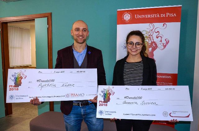 Il primo contest chiedeva l’ideazione e lo sviluppo di un gioco digitale utile a promuovere il nuovo brand turistico “Terre di Pisa” ed è stato vinto da Jessica Casaccia, 25 anni, studentessa di Archeologia, che ha progettato una “caccia al tesoro” per individuare e fotografare in modo originale i monumenti e le strutture di importanza artistico-culturale dei 32 comuni aderenti al brand. Pisamo ha invece premiato Pykhtin Nazar, 29 anni, neolaureato in Economia, che ha proposto un’idea per ridisegnare la circolazione nei pressi del Ponte della Fortezza a Pisa. Entrambi i ragazzi si sono aggiudicati duemila euro.